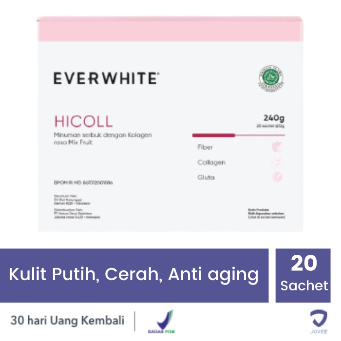 Produk EVERWHITE HICOLL SACHET - COLLAGEN, GLUTATHIONE, VITAMIN C, FIBER - 20 SCAHET ini harganya adalah Rp. 158.166,00 dan saat ini sedang Diskon , Produk ini sudah dilihat sebanyak 2659 kali dan sudah disukai sebanyak 929 kali.