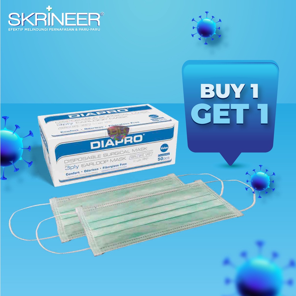 Beli 1 gratis 1 - Diapro Value Masker 3ply Earloop Green Box isi 50 pcs