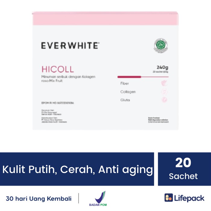 EVERWHITE HICOLL SACHET - COLLAGEN, GLUTATHIONE, VITAMIN C, FIBER - Kulit Putih, Cerah, Anti aging
