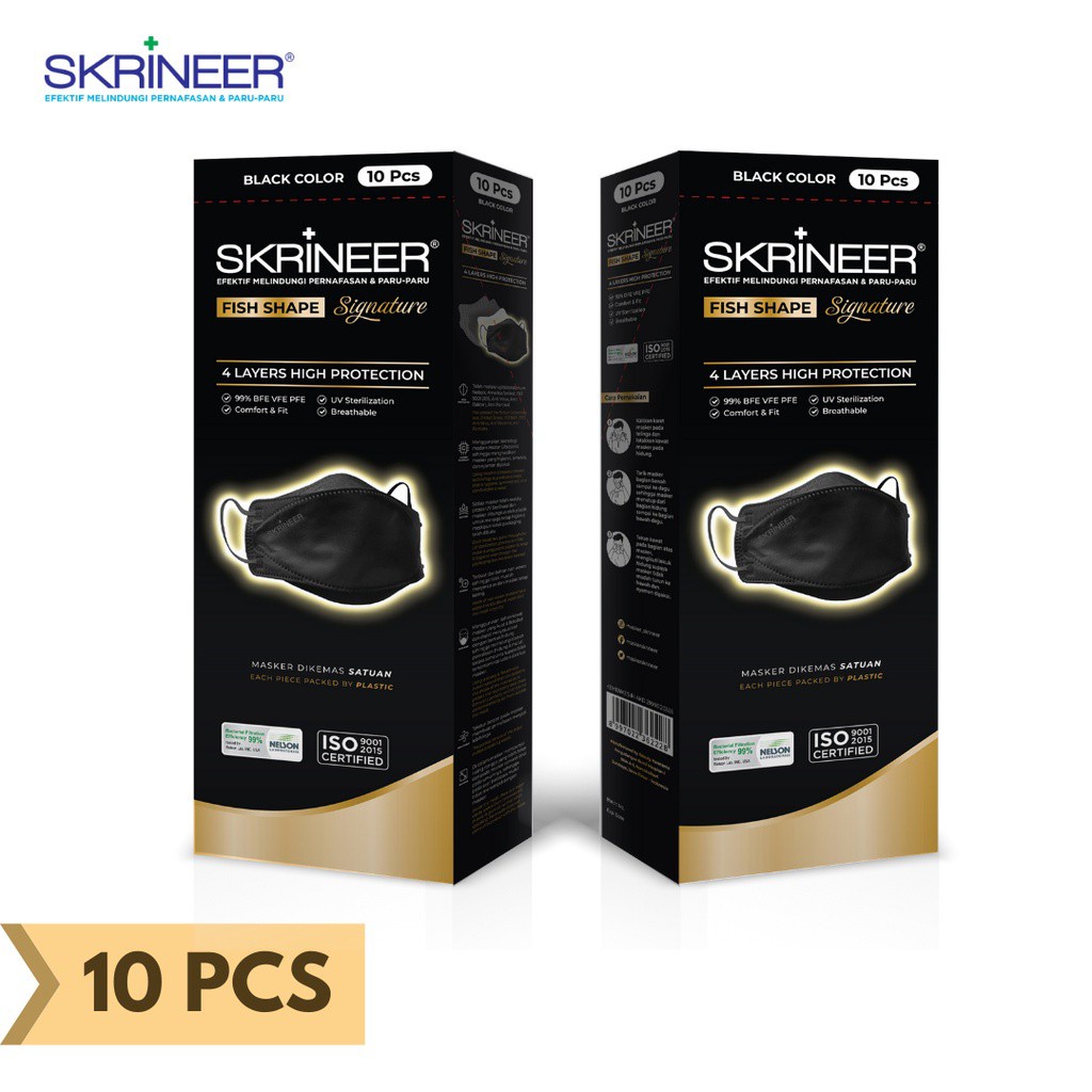 Alasan kenapa harus beli Skrineer Masker Fish Shape 4 ply Earloop Black isi 10 pcs sekarang