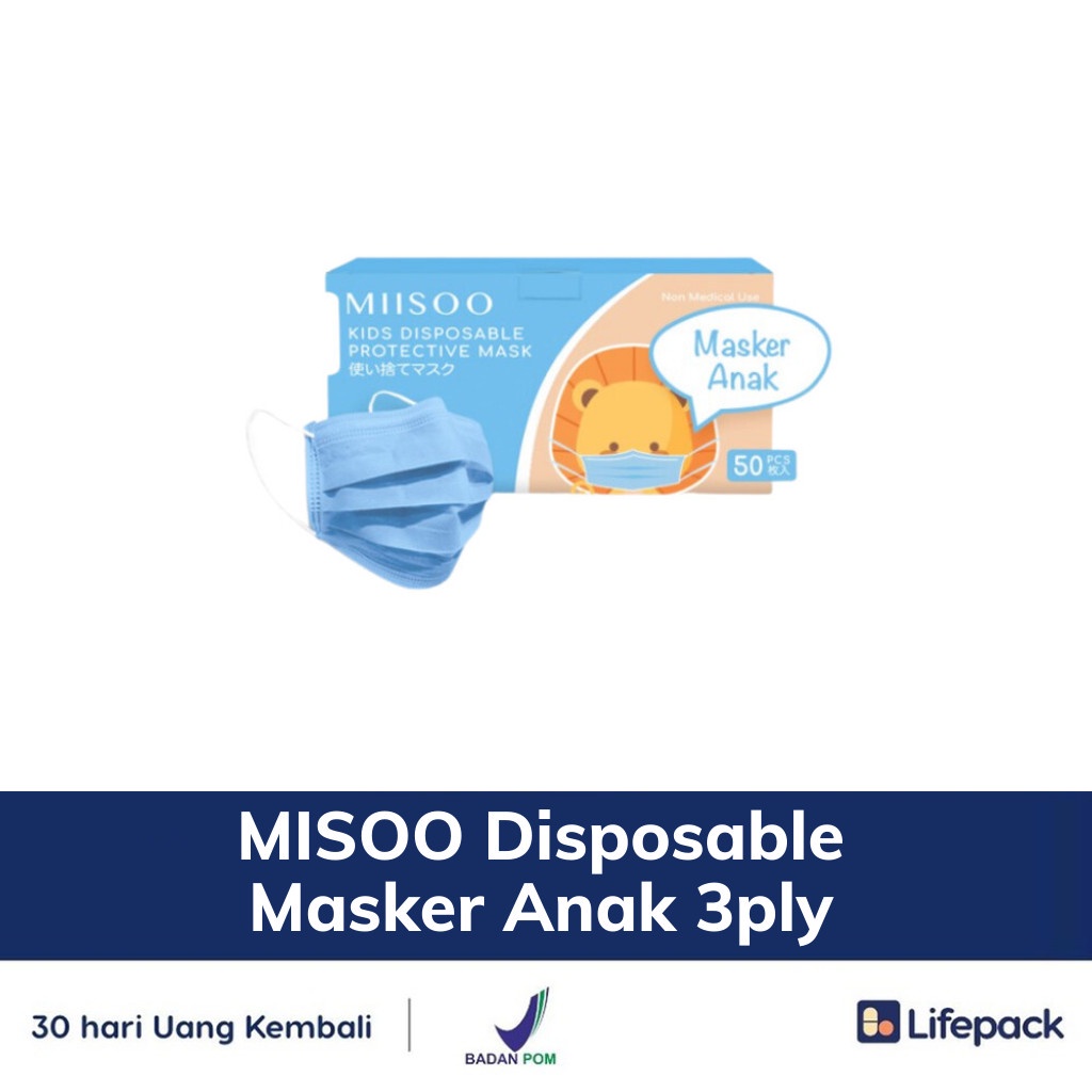 MISOO Disposable Masker Anak 3ply - 50 Pcs - Masker Kesehatan - LIFEPACK